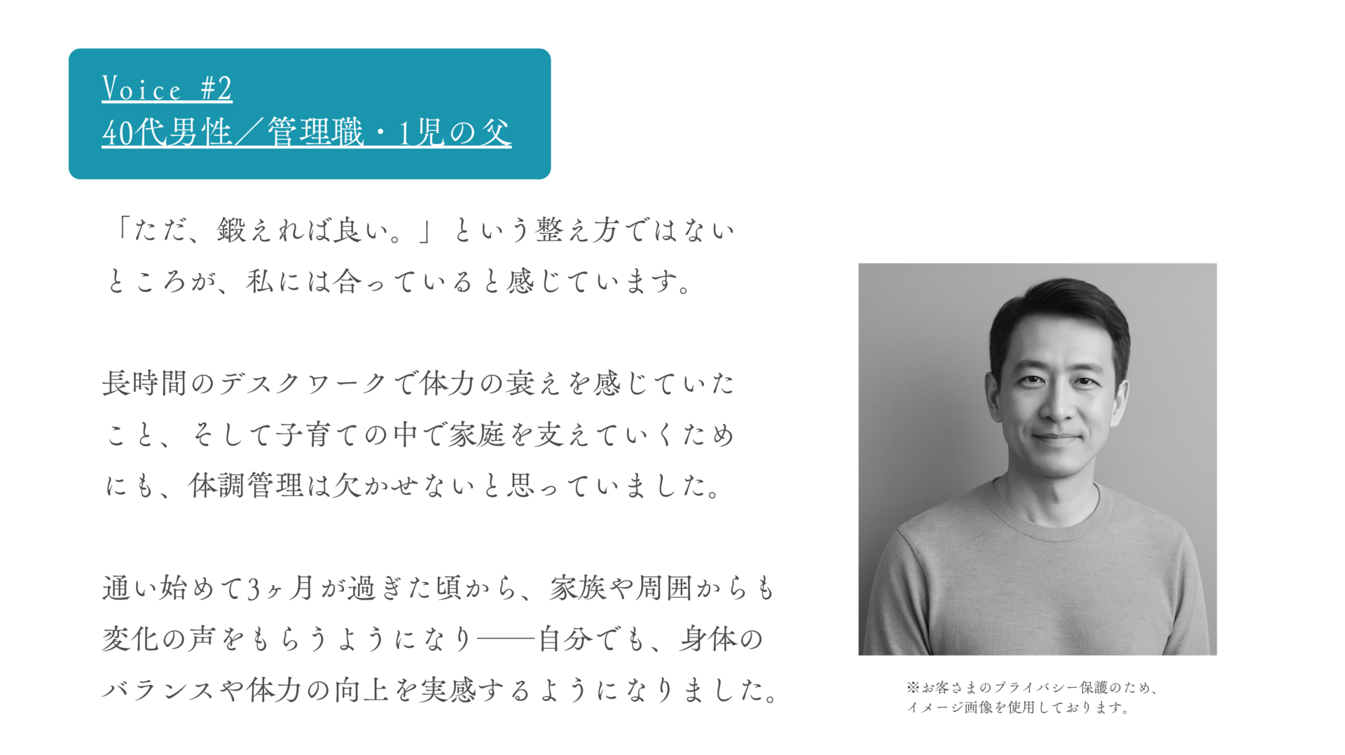 木村健一さま いつも大切なお時間をいただき、誠にありがとうございます。 ご丁寧なご感想をお寄せくださり、大変光栄に思っております。 お身体の調子が良くなられたとのこと、何より嬉しいお言葉です。 今後も、日々のライフスタイルに合わせた最適なケアを通じて、さらにコンディションを高めていけるよう努めてまいります。 引き続き、どうぞよろしくお願いいたします。